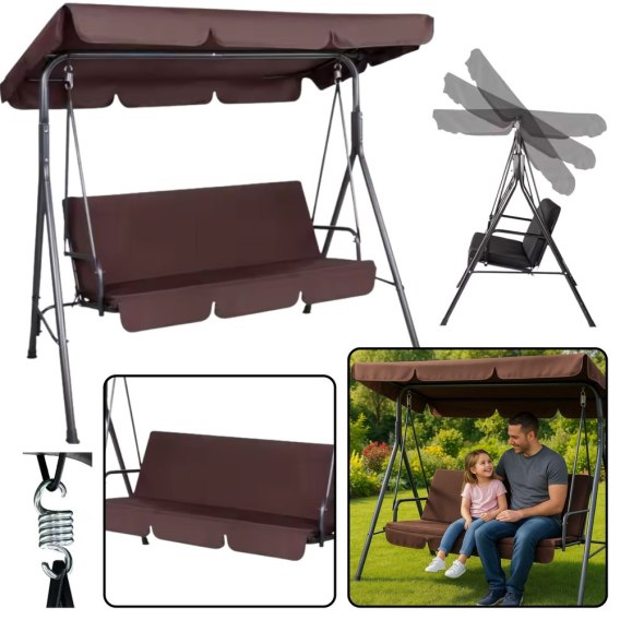 HUŚTAWKA TRZYOSOBOWA OGRODOWA BUJANA MATERAC BRĄZOWA