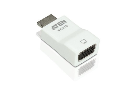 Model VC810 to konwerter sygnału HDMI na format VGA, umożliwiający bezpośrednie podłączenie źródła HDMI (np. laptopa, komputera, ultrabooka itp.) do urządzenia wyświetlającego VGA (np. projektora, monitora LCD itp.), co eliminuje konieczność zakupu urządzenia wyświetlającego obsługującego format HDMI. Konwerter ten obsługuje popularne rozdzielczości wideo do 1920 x 1200. VC810 jest niewielki, a jego instalacja wygodna, ponieważ nie wymaga żadnego oprogramowania wystarczy podłączyć sprzęt. Co więcej, ten konwerter typu plug-n-play nie wymaga zewnętrznego źródła zasilania. Związana z tym mobilność, prostota instalacji oraz łatwość obsługi czynią go idealnym rozwiązaniem dla takich środowisk jak sale konferencyjne, w których przeprowadzane są odprawy lub prezentacje.