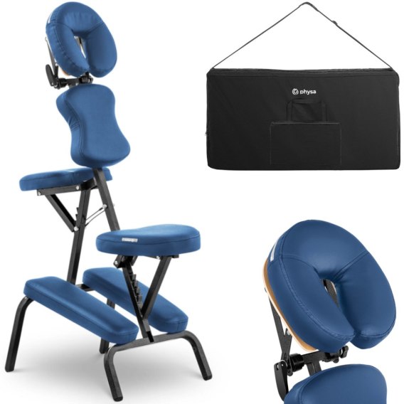 Krzesło do masażu tatuażu przenośne składane Montpellier Blue do 130 kg niebieskie Physa