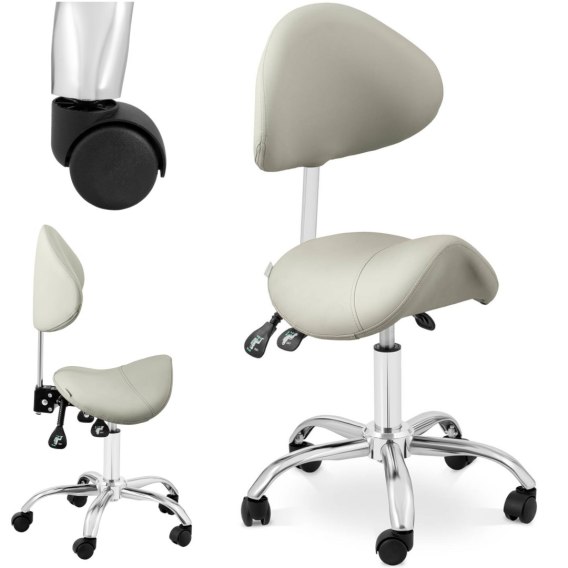 Krzesło kosmetyczne siodłowe z oparciem obrotowe regulowane MANNHEIM GREY szare Physa