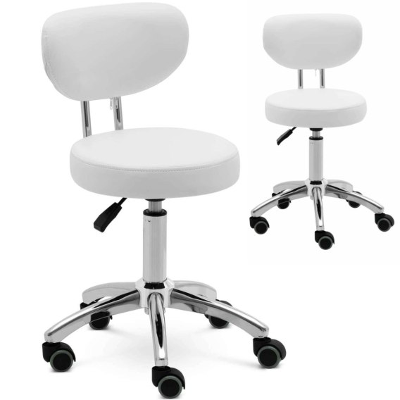Krzesło taboret hoker kosmetyczny z oparciem na kółkach do 150 kg ASCONA biały Physa