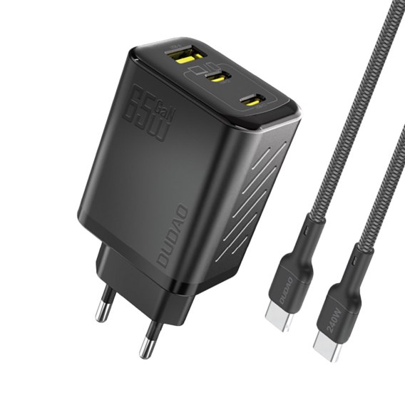 Ładowarka sieciowa GaN z kablem USB-C 1m 65W - czarna DUDAO