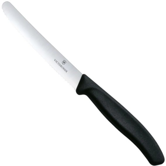 Nóż do pomidorów z zaokrąglonym ostrzem ząbkowany 110/219 mm - czarny Victorinox