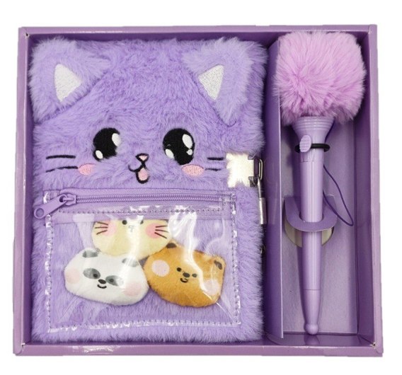 Pamiętnik pluszowy Kotek zestaw z długopisem Stnux