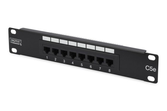 Patch panel 10" 8 portów, kat.5e, U/UTP, 1U, czarny (kompletny) Digitus