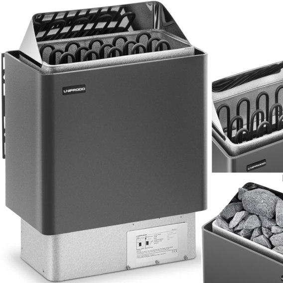 Piec do sauny elektryczny 8-12 m3 do 110C 400 V 8 kW czarno-srebrny UNIPRODO