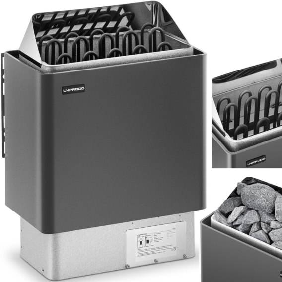 Piec do sauny elektryczny 9-13 m3 do 110C 400 V 9 kW czarno-srebrny UNIPRODO