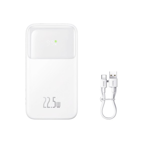 Powerbank z wyświetlaczem 10000mAh 22.5W Comet Series + kabel USB-A - USB-C 0.3m biały BASEUS