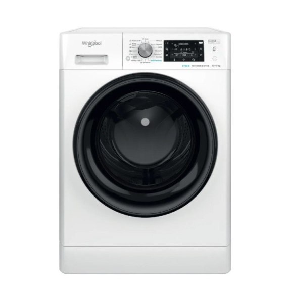 Bęben pralkosuszarki Whirlpool obraca się z prędkością 1600 obrotów na minutę.