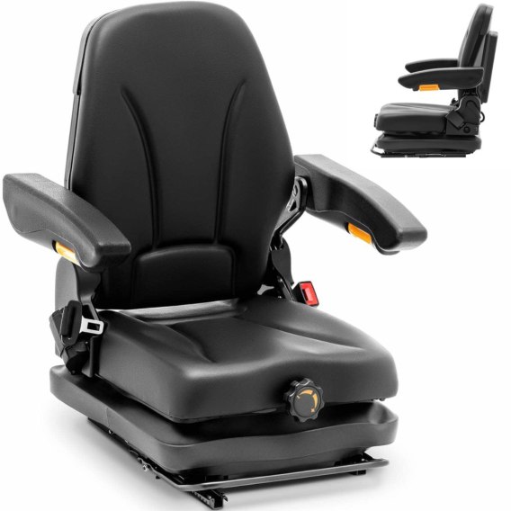 Siedzenie fotel regulowany z podłokietnikami i pasem do ciągnika siedzisko 42x47cm Hillvert