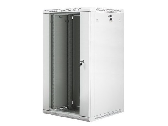 Szafa wisząca jednosekcyjna Lanberg WF01-6622-10S to rozwiązanie przeznaczone do budowy sieci, montażu okablowania oraz sprzętu w rozmiarze 19 o maksymalnym łącznym udźwigu do 60 kg. Może być stosowana w sieciach i serwerowniach zarówno w małych, jak i średnich firmach. Sprawdzi się również w instalacjach niskoprądowych takich jak sieci telewizji kablowych, systemy alarmowe, przeciwpożarowe, kontroli dostępu oraz systemy monitoringu CCTV i IP. Dzięki odpowiedniej konstrukcji, szafa umożliwia łatwy, samodzielny montaż. Charakteryzuje się szczelnością IP20, otwieranymi przednimi drzwiami z możliwością obrotu do 180°, wyposażonymi w zamek, zdejmowanymi bocznymi panelami (z zamkami w zestawie). Szafa posiada możliwość wprowadzenia okablowania poprzez górny i dolny panel. Całość wykonana jest z wysokiej jakości stali walcowanej, a dzięki konstrukcji do samodzielnego montażu (flat pack) znajduje się w płaskim opakowaniu co ułatwia transport. Dodatkowo w przesyłce załączone są dodatkowe akcesoria do mocowania szyn nośnych, śruby M6 oraz zaślepki paneli wejściowych.