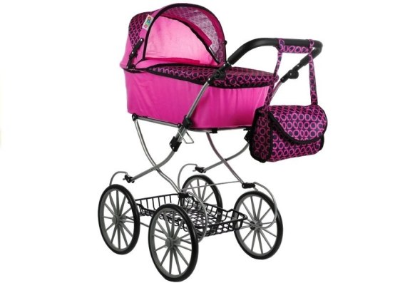 Czarno-różowy retro wózek ozdobiony jest graficznym wzorem w formie kółeczek, co dodaje mu ciekawego charakteru. Retro wózeczek z pewnością zainteresuje i zachęci do zabawy każdą małą opiekunkę — gwarantują to wymiary dopasowane do przeciętnego wzrostu kilkuletnich dziewczynek, a także konstrukcja inspirowana budową prawdziwych wózków dla dzieci. Co istotne — prezentowany retro model może rosnąć razem z dzieckiem, ponieważ posiada rączkę z możliwością regulowania jej wysokości. Wózek będzie odpowiedni dla wszystkich lalek i zabawek o maksymalnej długości 69 cm — duże wymiary gondoli z łatwością pomieszczą kilku zabawkowych pasażerów.