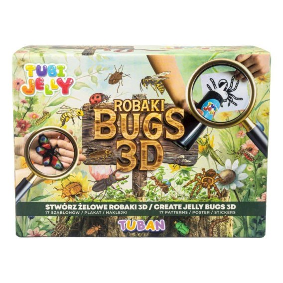 Z zestawem Tubi Jelly Bugs 3D stworzysz żelowe owady. W opakowaniu znajdziesz kolorowe żele oraz 17 szablonów, które ułatwią ci tworzenie projektów. Dodatkowo dołączona pusta folia umożliwi ci narysowanie dowolnego owada według własnego pomysłu. Dzięki specjalnemu aktywatorowi płynny żel zamienia się w trwałą figurkę. Gotowe owady możesz przechowywać w akwarium z wodnymi kryształami, który znajdziesz w zestawie. Dołączone naklejki pozwolą na ozdobienie akwarium, a plakat edukacyjny przybliży ci fascynujące fakty o owadach.